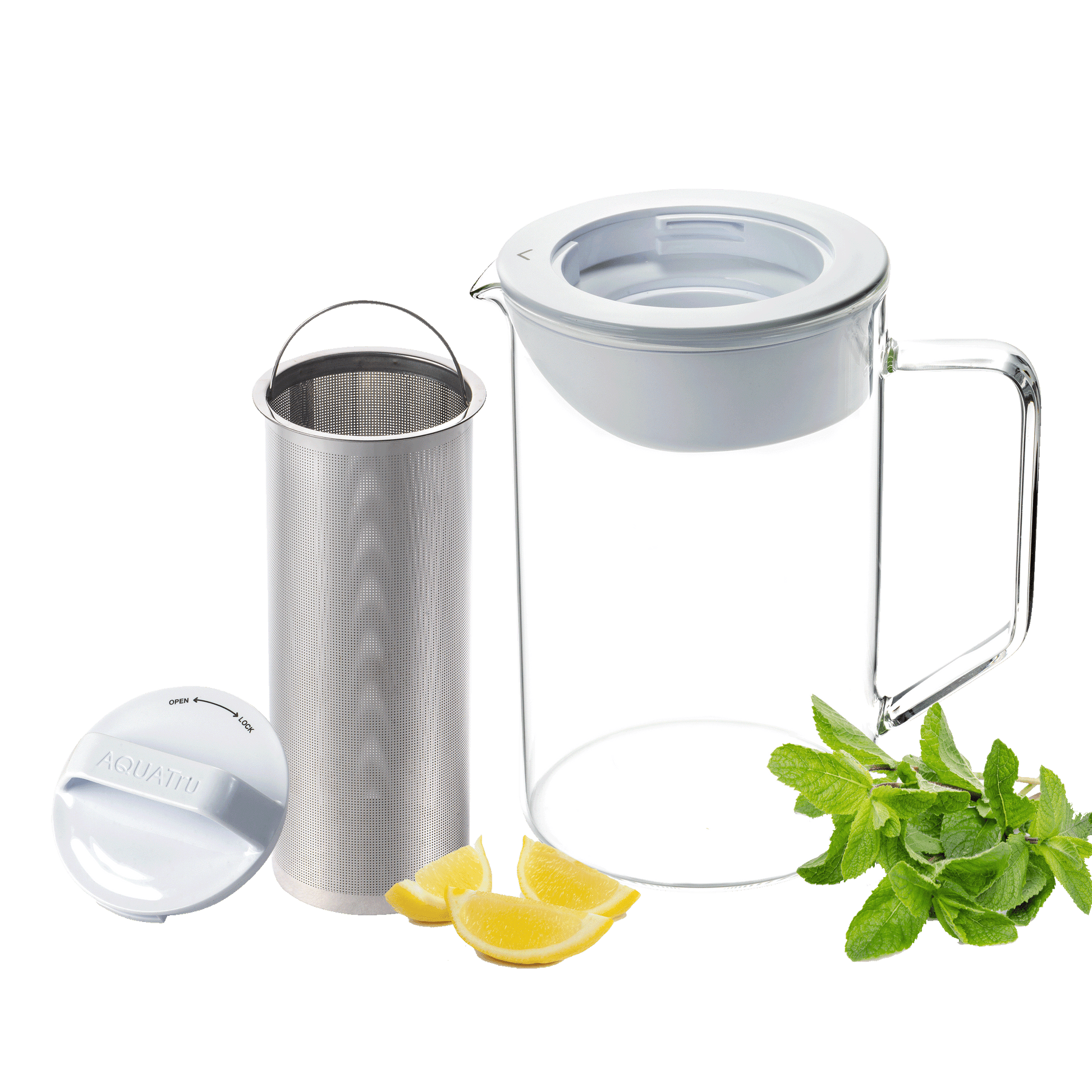 With the help of the extra water carafe with the lid and the aroma filter, you can easily add extra flavor to your water. For example, with delicious herbs like mint. Or with slices of lemon, orange, or ginger. AquaTru Infuser can also be used as an extra water carafe so that you have more purified water in stock. The carafe fits in the refrigerator.