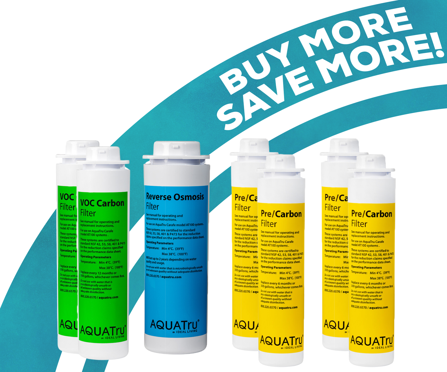 Save up to €50 when you buy a 1-year or 2-year filter package for your AquaTru system. These packages provide everything you need for consistent, pure water all year round. By purchasing a bundle, you not only save money but also ensure you always have the right filters on hand when your device signals it’s time for a replacement. Investing in a package guarantees optimal performance and water quality for the long term. Check out our packages listed below and choose the best option for your needs!