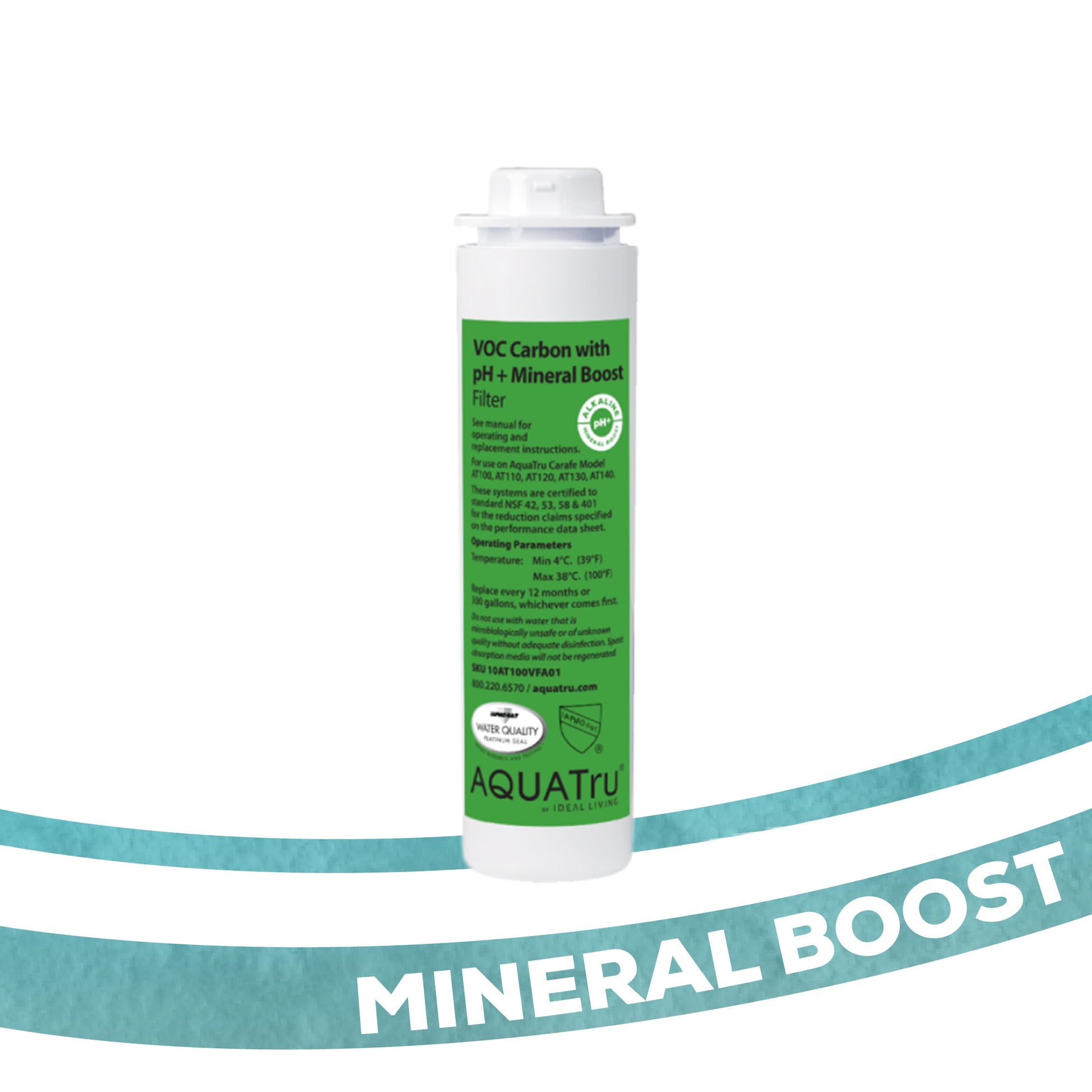 This VOC carbon filter with pH+ mineral boost is suitable for AquaTru Carafe. It provides mineralized alkaline pure water. Do you like to drink mineral-rich and alkaline water, comparable to brands such as Evian or Arrowhead, but without BPAs from plastic bottles? Then this filter is suitable for you. It makes your drinking water alkaline and adds healthy minerals such as calcium and magnesium. If you used the classic VOC carbon filter for this, you can simply replace it with the VOC carbon filter with pH+ mineral boost. The filter has a lifespan of 1135 litres and must then be replaced.