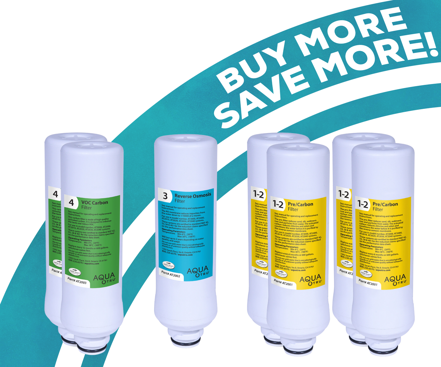 Save up to €50 when you buy a 1-year or 2-year filter package for your AquaTru system. These packages provide everything you need for consistent, pure water all year round. By purchasing a bundle, you not only save money but also ensure you always have the right filters on hand when your device signals it’s time for a replacement. Investing in a package guarantees optimal performance and water quality for the long term. Check out our packages listed below and choose the best option for your needs!